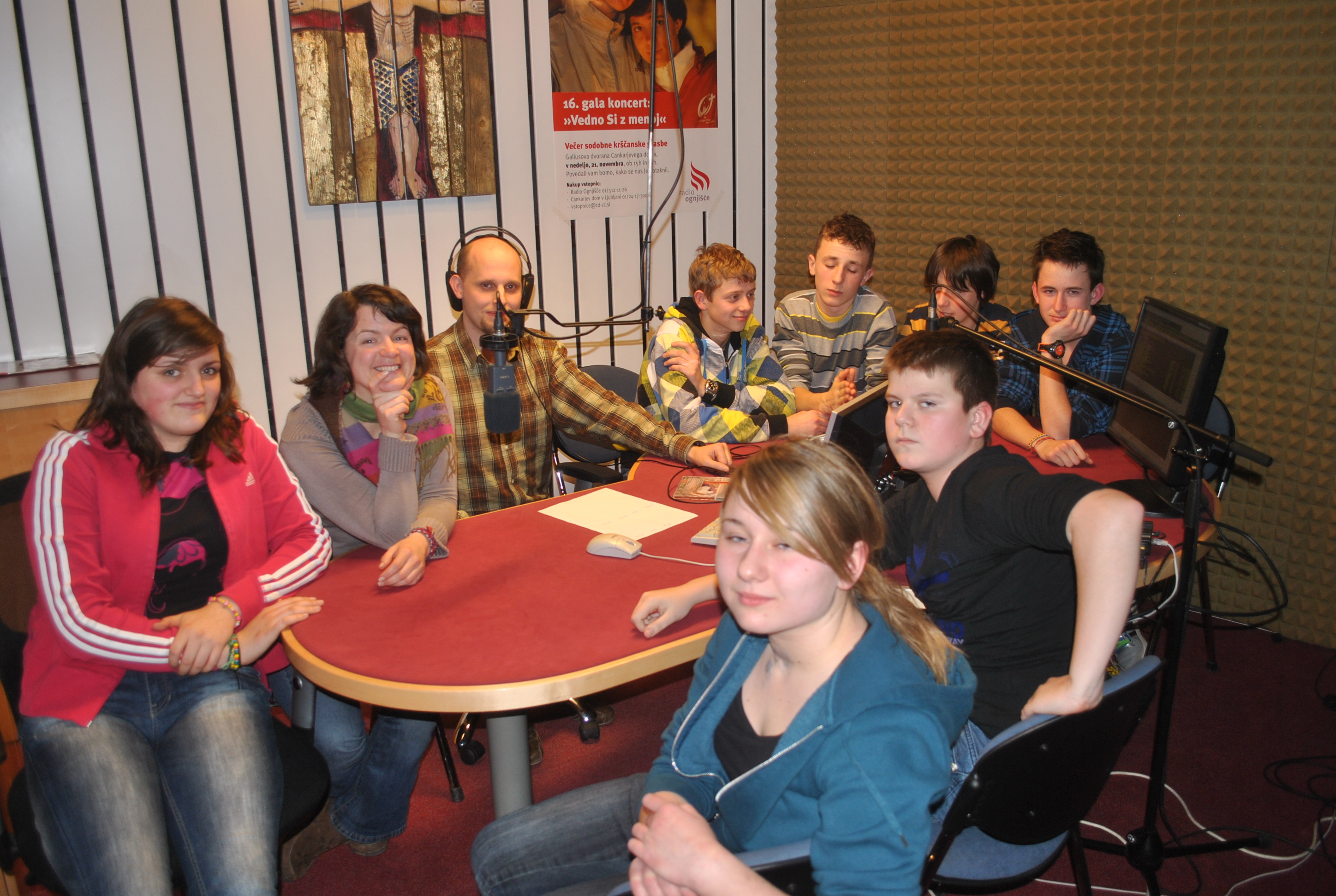 V petek, 28. januarja, nas je Blaž Lesnik, ki je tudi letos vodil tekmovanje Mladina in gore, povabil v studio na Radio Ognjišče – v svojo oddajo Doživetja narave. Seveda smo se povabilu radi odzvali in se s šolskim kombijem (da, s kombijem, toliko se nas je nabralo!) podali v Ljubljano. Prav prijetno smo poklepetali, seveda ker smo se pred oddajo dodobra nasmejali vsem foram o Chuck Norrisu, ki sta jih iz rokava stresala matematika Janez in Gašper. Naj katero izmed njih delimo z vami: Koliko sklec naredi Chuck Norris? Vse. Chuck Norris je Tour de France prevozil na sobnem kolesu. Chuck Norris ne verjame v Boga, ampak Bog verjame vanj …