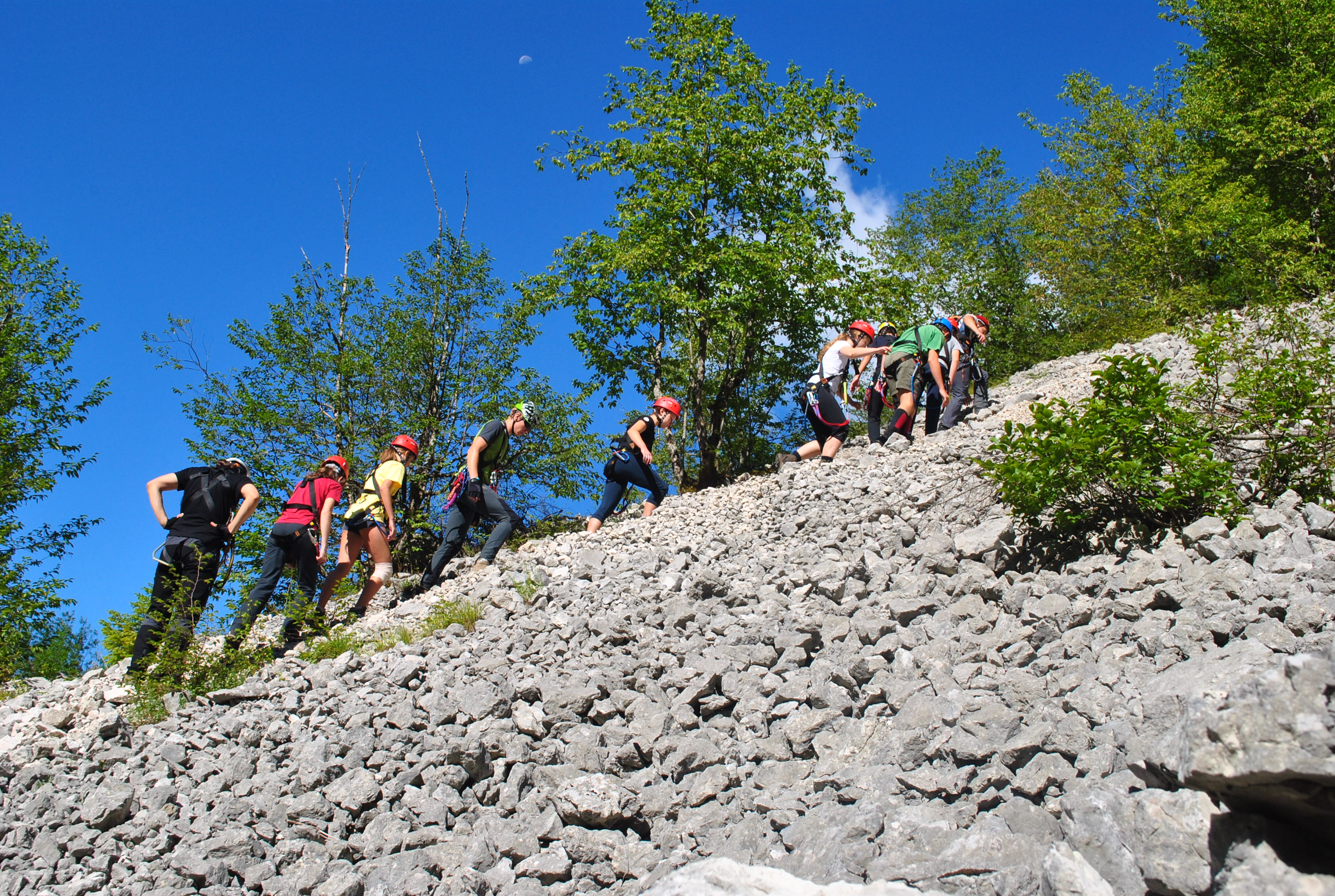 Uspelo nam je izvesti en “tapravi pohod†in sicer na Javoršček (1557m), sprehodili smo se do trdnjave Fort Hermann in eno izmed redkih jasnih noči izkoristili za nočni pohod proti Planini Bala. Na bližnjem učnem poligonu (t.i. ferati) v Bavšici smo s čelado na glavi in “opasani†preverjali in krepili svoje sposobnosti gibanja po zelo zahtevnih poteh, vodstvo tabora pa je poskrbelo tudi za eno super presenečenje in sicer vožnja s kolesom po okolici Bovca.