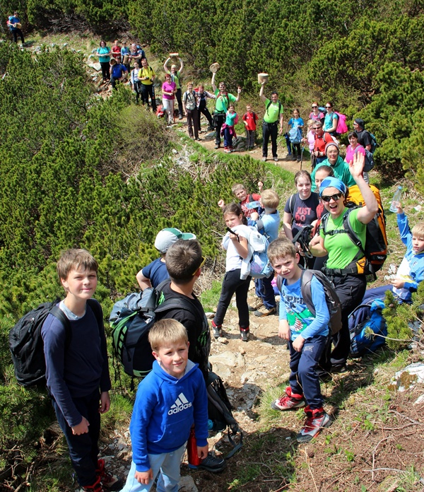 Sončno majsko soboto (9. 5.) smo kompas usmerili proti gologlavemu Velikemu Snežniku, ki se dviga nad deželo medvedov, volkov in risov – a najbrž še uživajo v zimskem spanju, saj jih na žalost najmlajših udeležencev nismo srečali. Na najvišji vrh Notranjske nas je krenilo enainštirideset, generacijsko tako pisanih kot mavrica. Med potjo od Planinskega doma na Sviščakih (1250 m) na vrh Snežnika (1796 m) je bilo opaziti le še nekaj zaplat snega (dovolj za neizmerno veselje), s pogledom na Cres in Krk pa je med borovci skorajda zadišalo po morju – po joti in štrukljih pa prav zares v Koči Draga Karolina na Velikem Snežniku, kamor so najmočnejši prinesli kar nekaj kurjave za mrzle večere. Avtobusna odisejada nam je žal odškrnila ogled slapa Sušec, smo si jo pa “skrajšali” s prepevanjem in krepčilnim spancem. Izlet lahko z nami podoživite v fotogaleriji. (M. Č.)