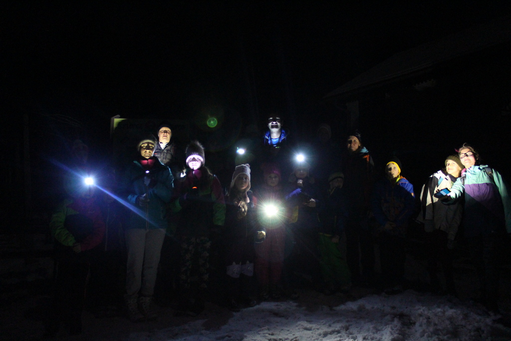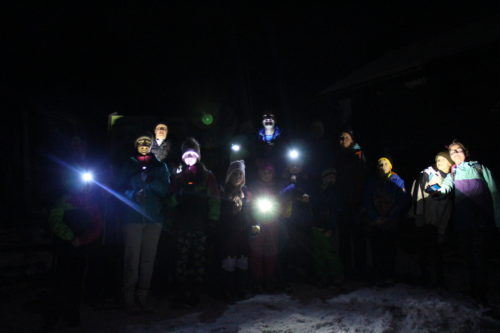 Tokrat nas je pot do “domačice” vodila pod Gradiščem in Brano. Da bi zaznali z luno obsijano pokrajino, ki je bila še posebno svetla tudi zaradi snežne odeje, smo večkrat izklopili svetilke, da bi zaslišali zgolj svoje stopinje, pa smo ugasnili tudi svoje glasilke. Podkrepljeni s čokoladnimi keksi in Damjaninim čajem smo se s Preskočine odpravili še na Prednjo goro in Gaj. S prve smo opazovali kot New York osvetljeno Novo vas, ki smo jo zato poimenovali z New village. Z drugega pa smo se ozrli na Gorico, si poštempljali dnevnike in sestopili na izhodišče. Nekaj utrinkov pa najdete seveda še v naši galeriji.